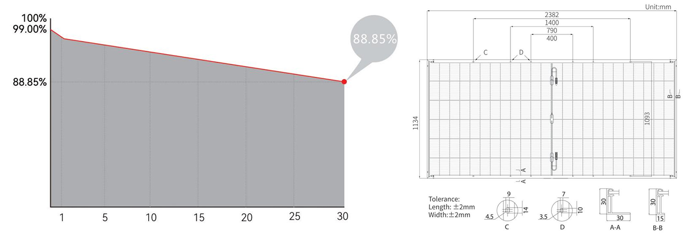 | Short Circuit Current (Isc/A) | 15.28 | 15.36 | 15.44 | 15.52 | 15.6 |